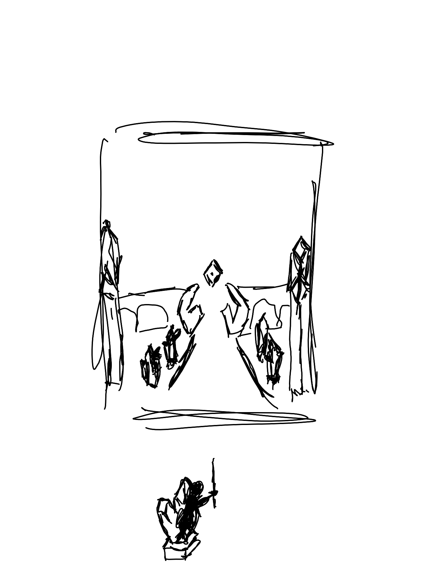 Here’s an animation showing that end progression taken from Matt’s ipad (using procreate). Yes, he sketched it by hand on his ipad. I watched him apple pen stroke over apple pen stroke carve this from the ether.