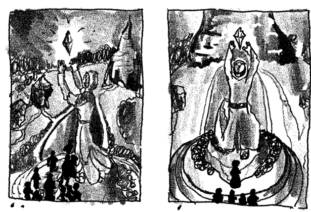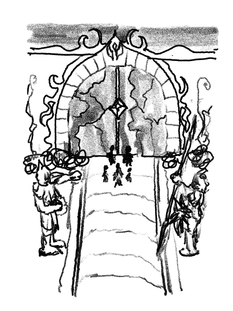 Final thought on this: the work we did shaping the “Crystal Gate” entrance to Weun Academy actually transformed the description that ended up in the book. It was originally just a gateway in the forest, a large gateway with statues on either side. When we attempted to think like “the architects of Weun Academy’s campus” we thought about what experience we wanted to have students or anyone else coming through the forest to that way on to the campus. We wanted this (preferred way for new students to arrive) gateway to supercharge one’s excitement, to create an anchoring to the D’mok Warriors that came before them, to see their own potential in the statues of the heroes from the (still recent) past. It’s funny how production work can loop back and impact the source material before release! Anyway, I found that interesting and wanted to share.